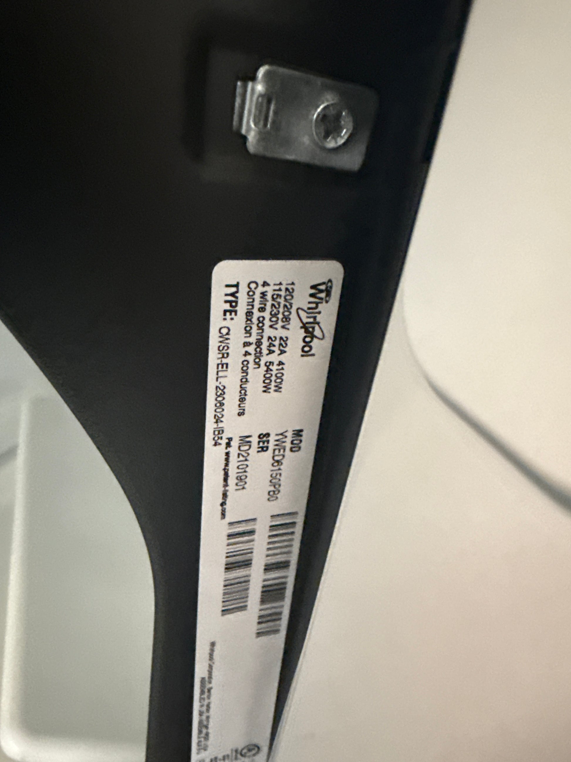 Sécheuse électrique de 7,0 pi³ de Whirlpool (YWED6150PB)- BNOIRE MAT
