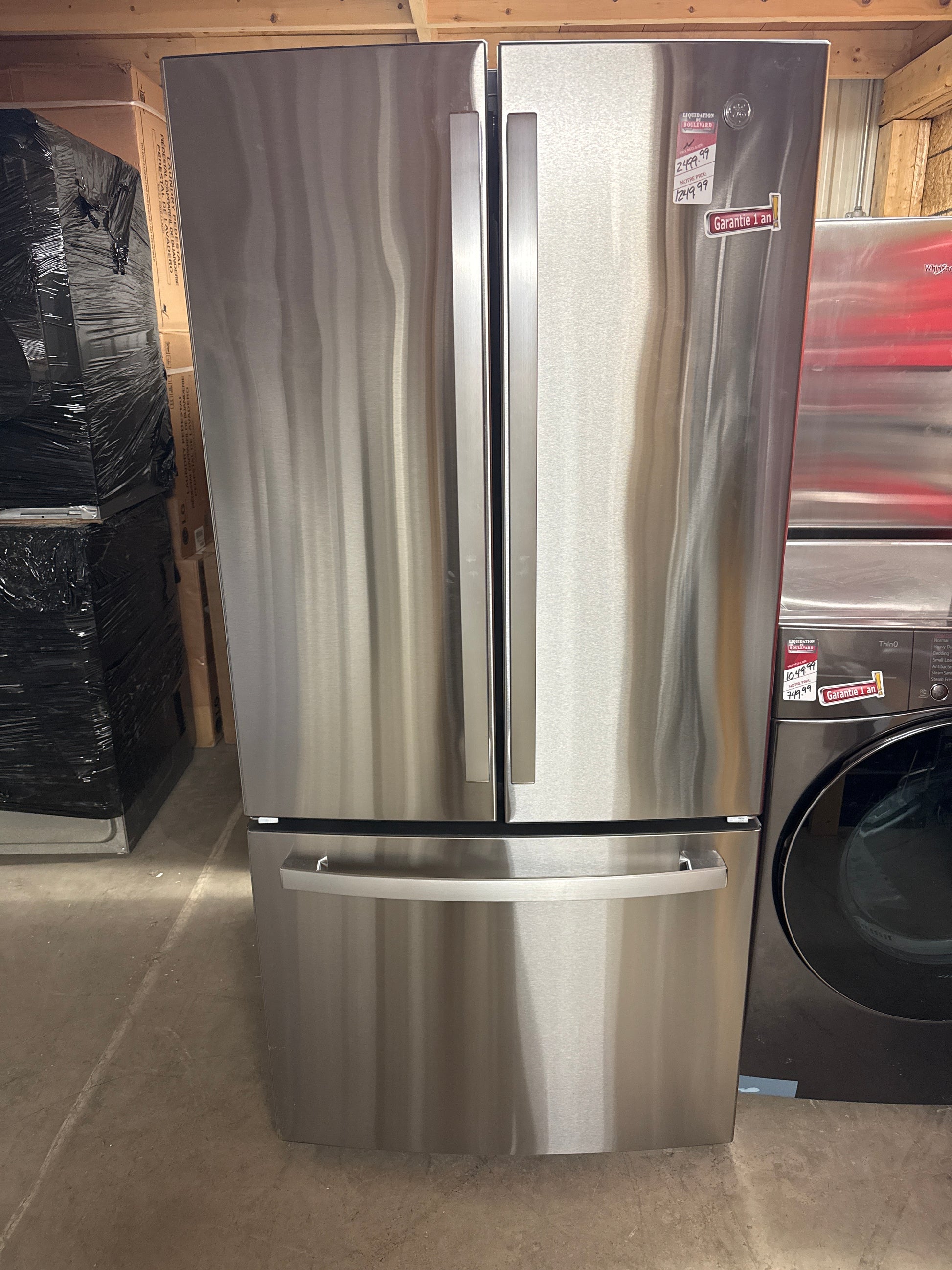 Réfrigérateur à deux portes de 25 pi³ et 33 po de GE (GNE25DYRKFS) - Acier inoxydable