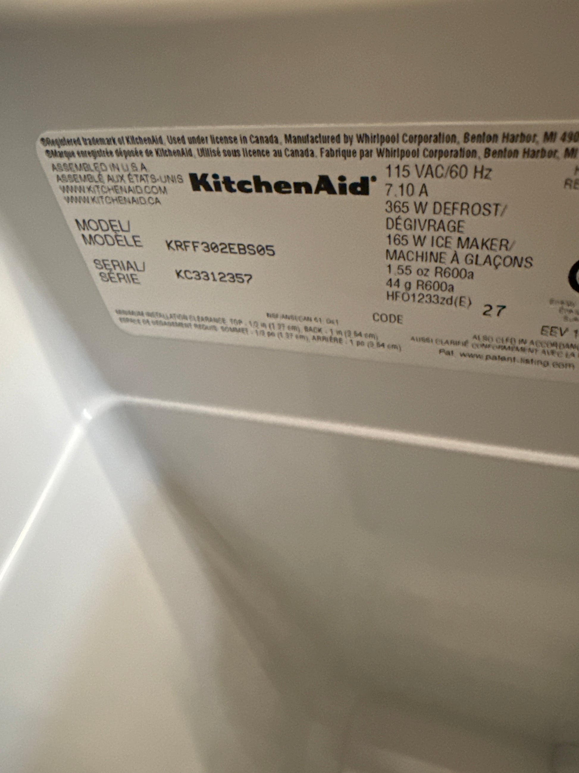 Réfrigérateur à deux portes 22,1 pi³ 33 po de KitchenAid (KRFF302EBS) - Acier inoxydable noir