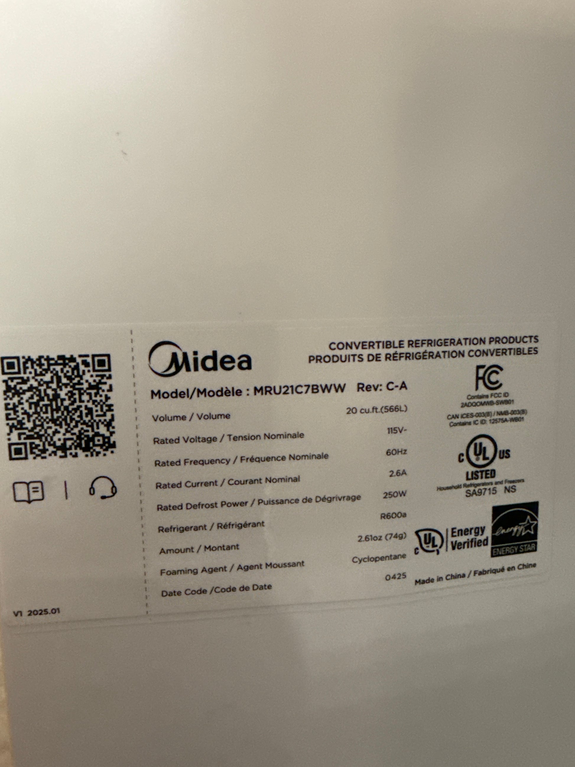 Réfrigérateur-congélateur 3-en-1 hybride Midea 20 pi³, blanc MRU21C7BWW