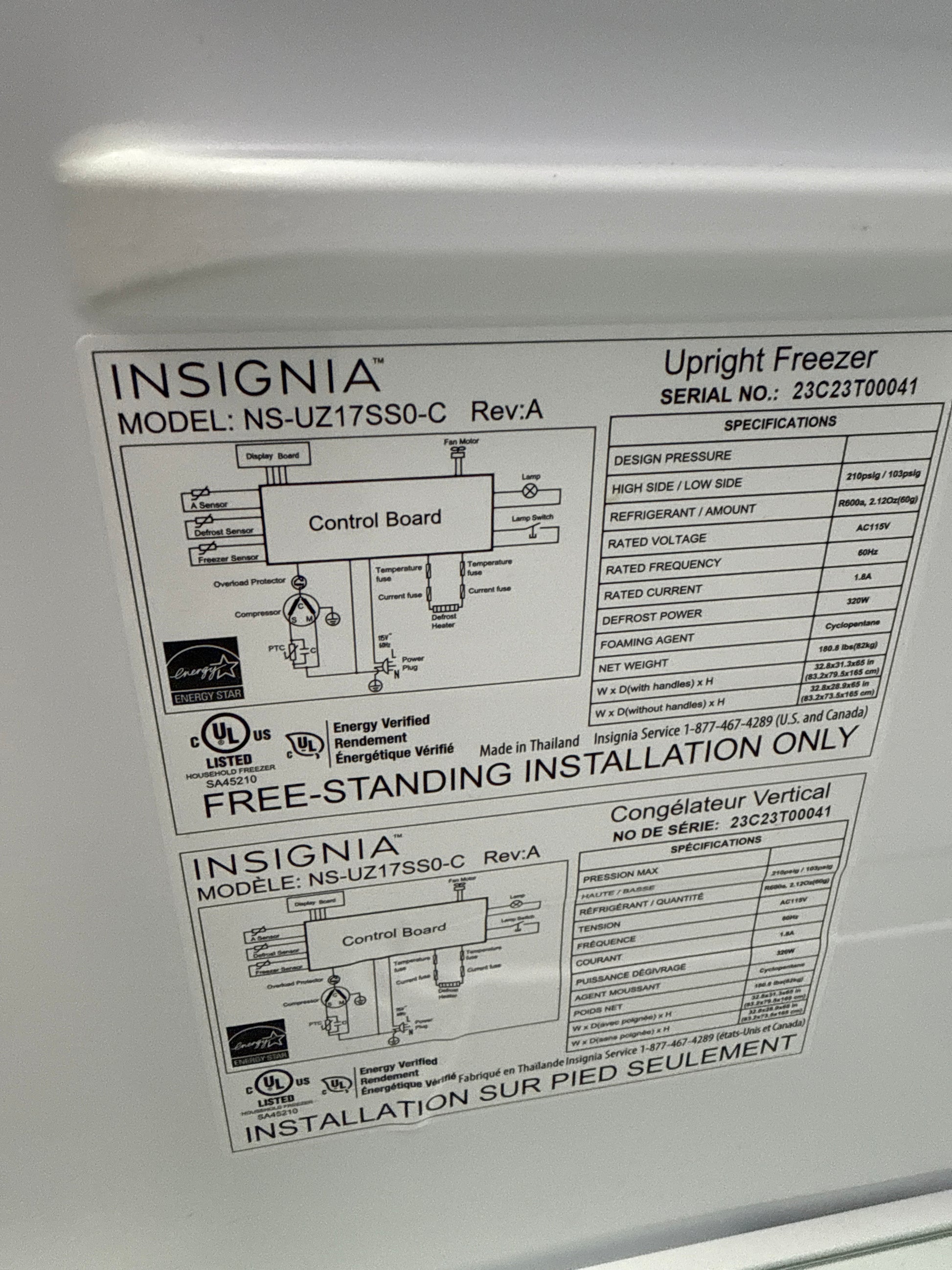 Réfrigérateur/congélateur vertical convertible sans givre 17 pi³ d'Insignia (NS-UZ17WH0)- BLANC