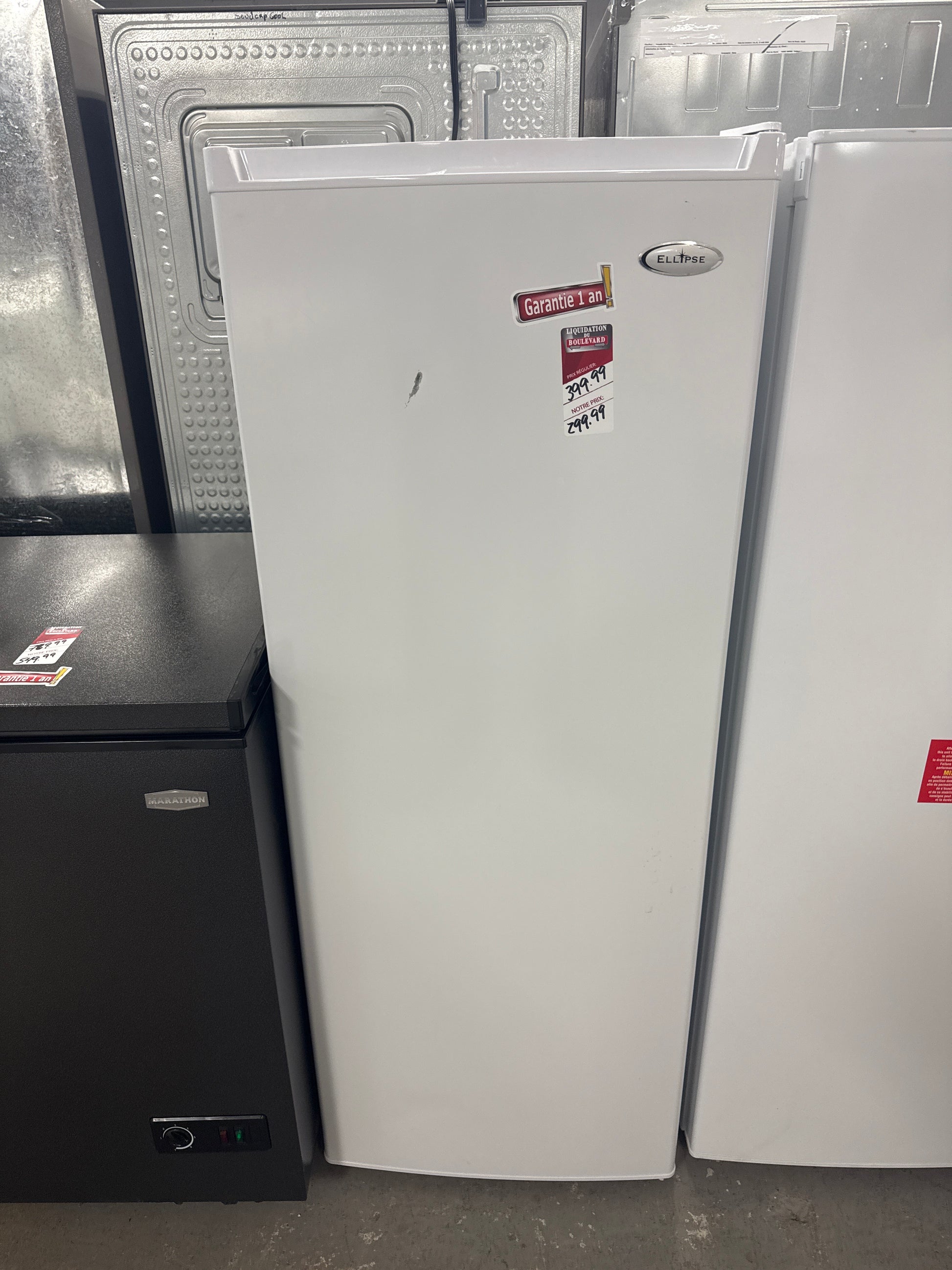 Profitez d’un rangement vertical efficace avec le congélateur Ellipse EVF060W de 6,0 pi³. Idéal pour les espaces restreints, il offre un contrôle mécanique intérieur simple d'utilisation, une poignée encastrée au design minimaliste et des pattes ajustables pour une stabilité parfaite. Son ouverture réversible permet une installation flexible selon votre espace. Ce congélateur compact et fonctionnel est parfait pour les besoins de congélation supplémentaires à la maison.