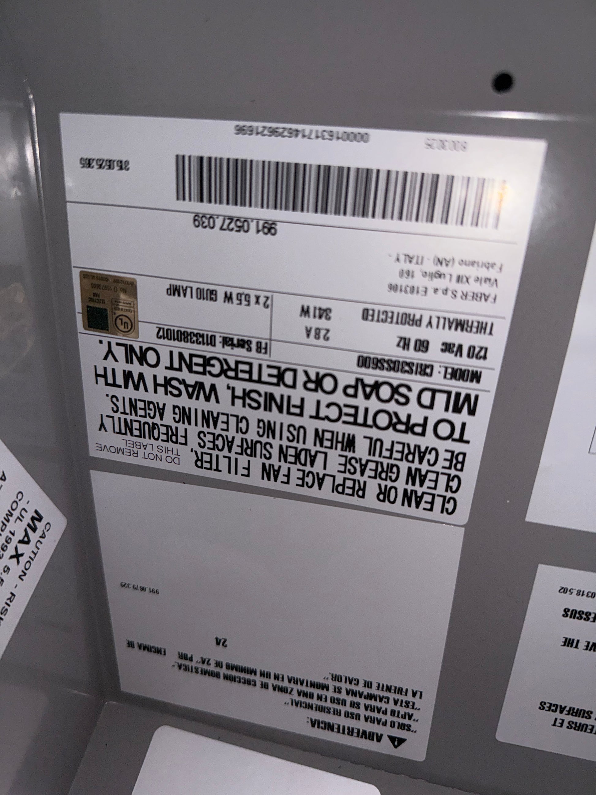 Faber Hotte Sous armoires 30 Po. Modèle CRIS30SS600