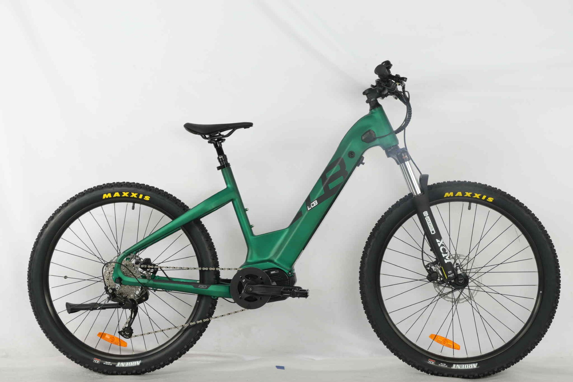 Cadre VTT semi-rigide 27,5 pouces en alliage hydroformé, passage de câbles interne au tube de direction, batterie amovible au tube diagonal avec verrou de sécurité