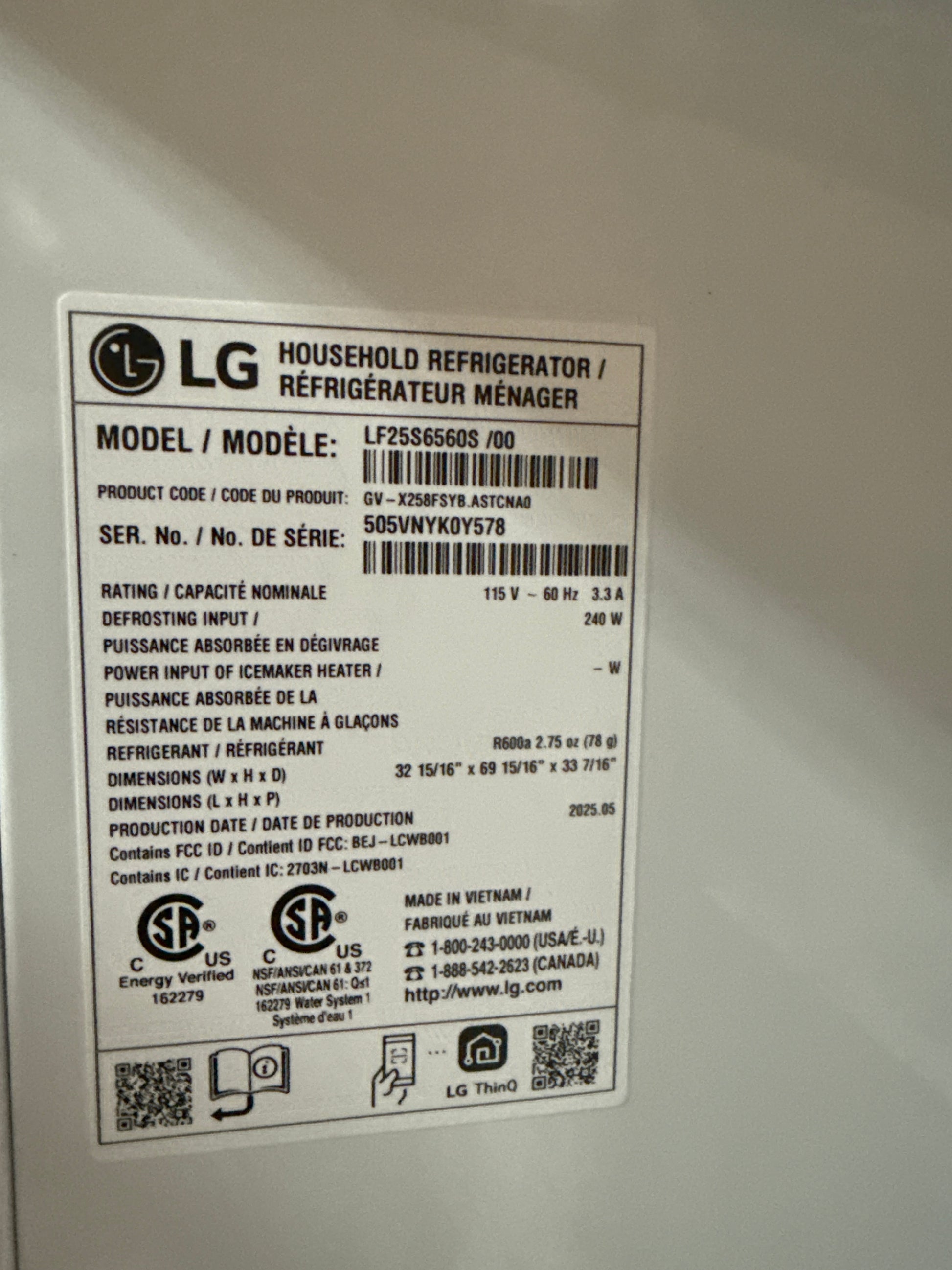Réfrigérateur à deux portes 24,5 pi³ 33 po avec distributeur d'eau et de glaçons de LG (LF25S6560S) - Inox